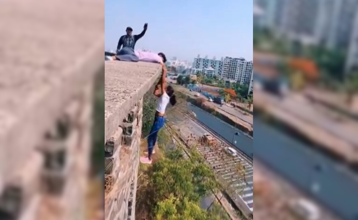 वीडियो में देखा जा सकता है कि कैसे एक युवती अपनी जान जोखिम में डालकर रील बना रही है. अगर थोड़ी सी भी लापरवाही हुई तो युवती की जान भी जा सकती है. वायरल हो रहे इस वीडियो में देखा जा सकता है कि युवती एक लड़के के हाथ के सहारे है.
