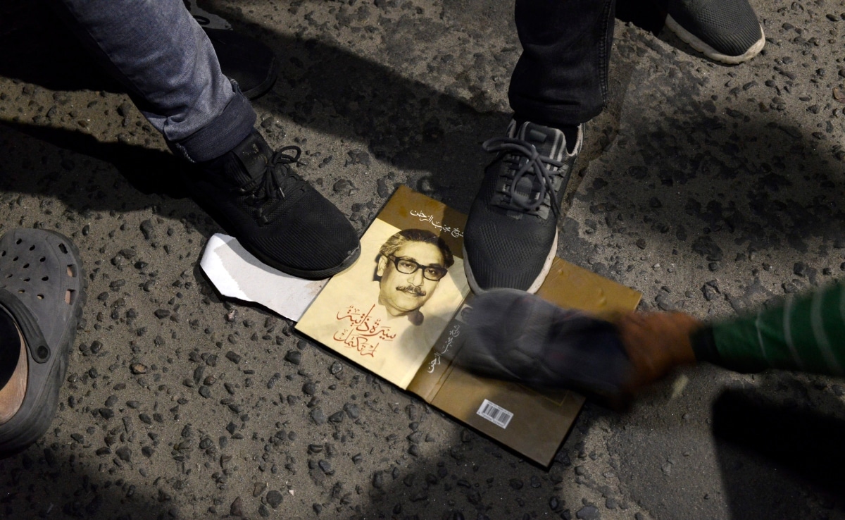 ढाका में बांग्लादेश के संस्थापक शेख मुजीब उर रहमान के घर धानमंडी-32 में लोगों ने तोड़फोड़ की.