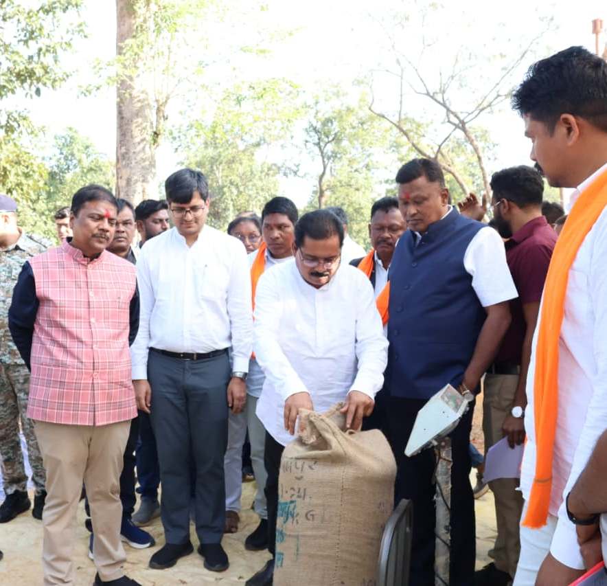 कार्यक्रम के दौरान मंत्री श्री कश्यप को बीजापुर कलेक्टर ने जिले में धान खरीदी की तैयारियों की विस्तृत जानकारी दी। जिला खाद्य अधिकारी ने खरीदी की प्रगति और व्यवस्था का प्रस्तुतिकरण किया। इस अवसर पर पूर्व मंत्री श्री महेश गागड़ा, जिला पंचायत अध्यक्ष श्रीमती जानकी कोरसा, उपाध्यक्ष श्री पेरे पुलैय्या, अनेक जनप्र्रतिनिधिगण, सीईओ जिला पंचायत श्रीमती नम्रता चौबे, उपनिदेशक इंद्रावती टाइगर रिजर्व श्री संदीप बलगा सहित अधिकारी, किसान और ग्रामीणजन उपस्थित रहे।