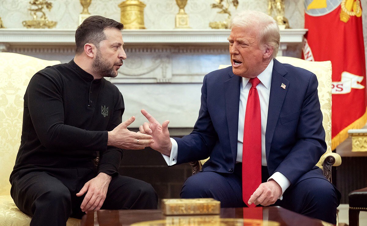 अमेरिकी राष्ट्रपति डोनाल्ड ट्रंप (Donald Trump) और यूक्रेन के राष्ट्रपति वोलोदिमिर जेलेंस्की के बीच शुक्रवार को बातचीत के दौरान तीखी बहस हुई. हालांकि इस बातचीत से पहले डोनाल्ड ट्रंप ने जेलेंस्की का स्वागत किया और उन्हें दरवाजे पर रिसीव भी किया. हालांकि बातचीत के दौरान दोनों के बीच इस कदर तल्खी देखने को मिली कि ट्रंप भड़क गए. यहां तक की वो जेलेंस्की को बाहर भी छोड़ने तक नहीं गए. ट्रंप ने सोशल मीडिया पर जेलेंस्की की जमकर आलोचना की है. ट्रंप ने कहा है कि जेलेंस्की की शांति के लिए तैयार नहीं है. साथ ही उन्होंने जेलेंस्की पर अमेरिका के अपमान का भी आरोप लगाया.