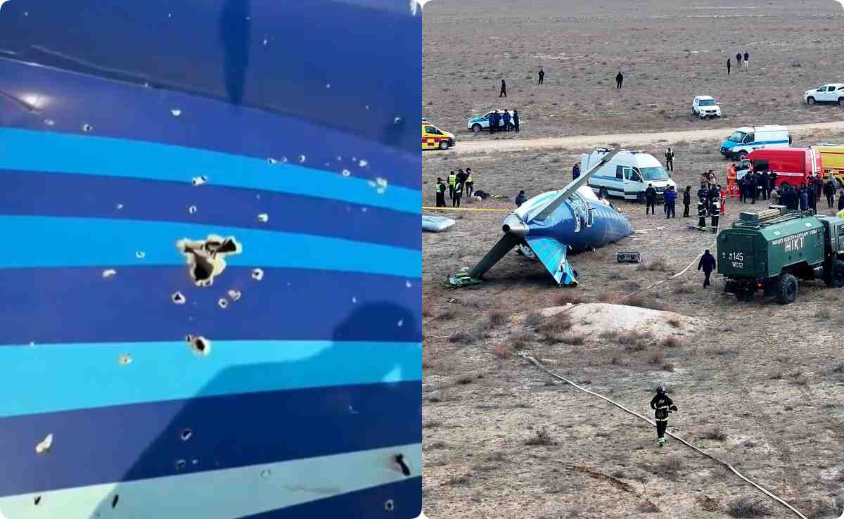 अजरबैजान एयरलाइन्स की विमान दुर्घटना में 38 लोगों की मौत हो गई थी. विमान दुर्घटना की जांच जारी है. लेकिन कुछ विदेशी मीडिया रिपोर्टों के हवाले से विमानन विशेषज्ञों ने विमान के बाहरी हिस्से पर निशानों की ओर इशारा किया है. बताया जाता है कि मिसाइलों के छर्रों से विमान को नुकसान हुआ है. क्लैश रिपोर्ट के वीडियो में विमान के बाहरी हिस्से में बड़े छेद दिखाई दिए.
