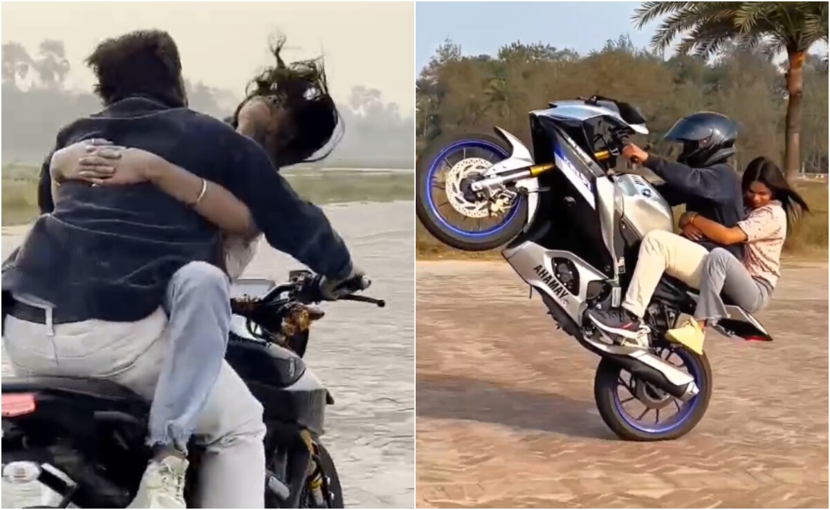 रील्स का नशा! पेट्रोल टंकी पर बैठाई लड़की, फिर एक पहिए पर दौड़ाई बाइक, देखें VIDEO