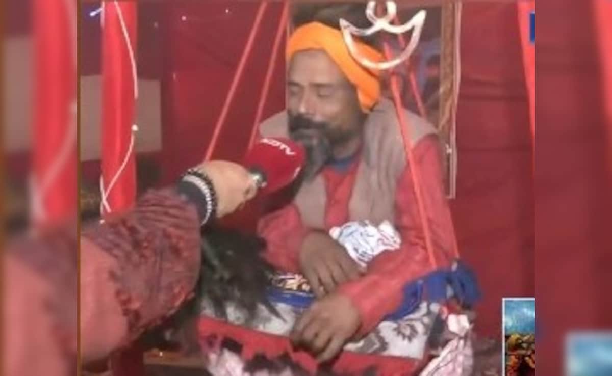 यह हठयोगी बाबा एक झूले को पकड़े रहते हैं और खड़े रहते हैं. महाराज पिछले छह साल से लगातार खड़े हैं, यानी कि वे चौबीसों घंटे खड़े रहते हैं. उन्होंने बताया कि यह जनकल्याण के लिए हठयोग है. उनसे जब रात में सोने के बारे में पूछा तो उन्होंने बताया कि वे रात में ऐसे ही आराम कर लेते हैं. झूले में आराम नहीं होता तो टेबिल पकड़कर खड़े-खड़े आराम करते हैं.