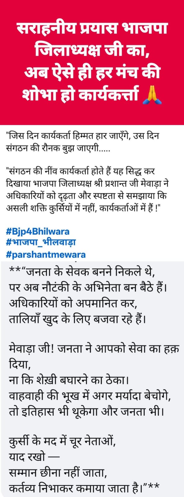 ”सत्ता के नशे में मदमस्त भाजपा जिलाध्यक्ष? वाहवाही की होड़ में मेवाड़ा ने लांघी मर्यादा?”
