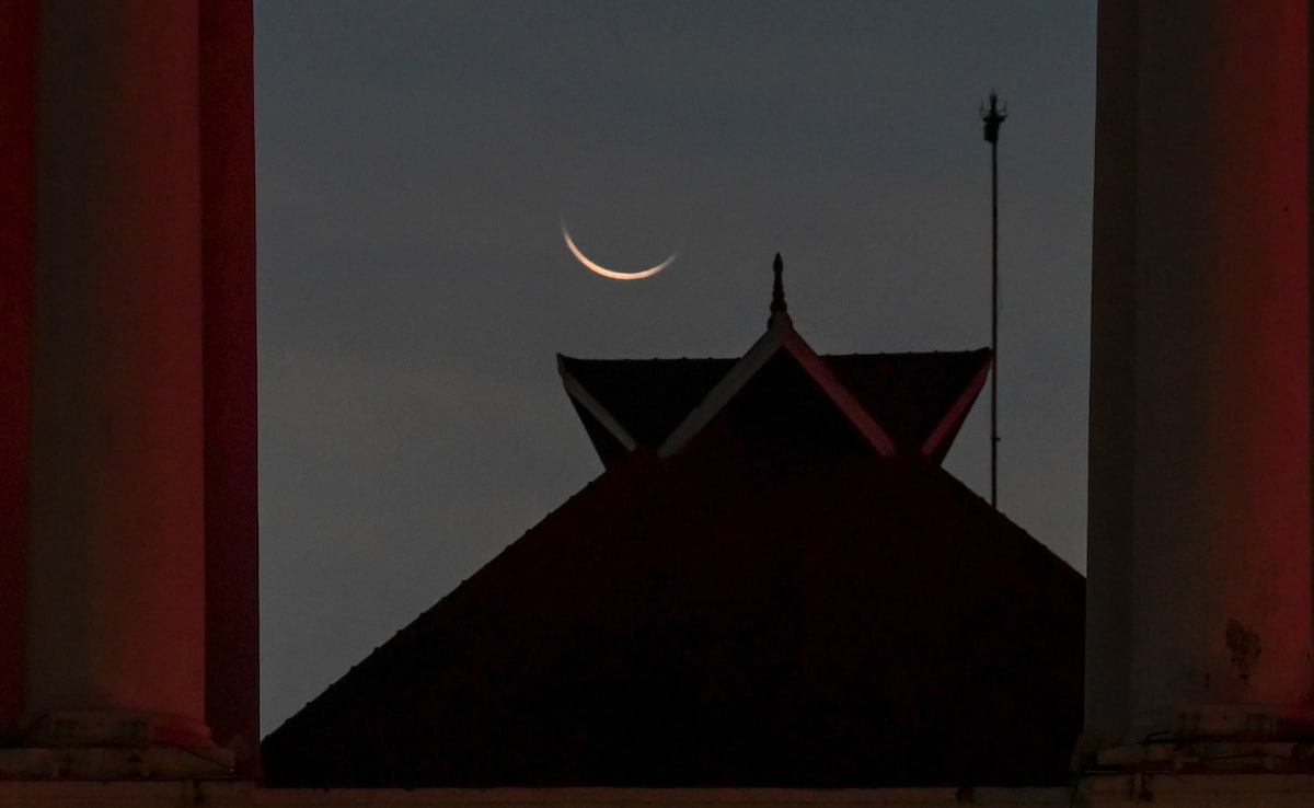 हैदराबाद में मक्का मस्जिद के ऊपर आसमान में दिखा अर्धचंद्र.