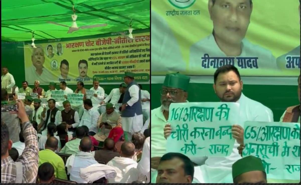 पोस्ट करते हुए तेजस्वी ने शनिवार को लिखा, मिलते है कल सुबह आरक्षण चोरों और नौकरी चोरों के विरुद्ध धरना प्रदर्शन में. हमारी सरकार द्वारा बिहार में बढ़ाई गई 65% आरक्षण सीमा को रोक देने से अनुसूचित जाति/जनजाति, पिछड़ा-अतिपिछड़ा वर्ग के अभ्यर्थियों को 16% आरक्षण का सीधा नुकसान हो रहा है, जिससे इन वर्गों के 50,000 से अधिक युवाओं को नौकरी से हाथ धोना पड़ा है. 𝐓𝐑𝐄-𝟑 शिक्षक नियुक्ति के तीसरे चरण में भी आरक्षण लागू नहीं होने से इन वर्गों के हजारों अभ्यर्थियों को हजारो नौकरियों का नुकसान हुआ.