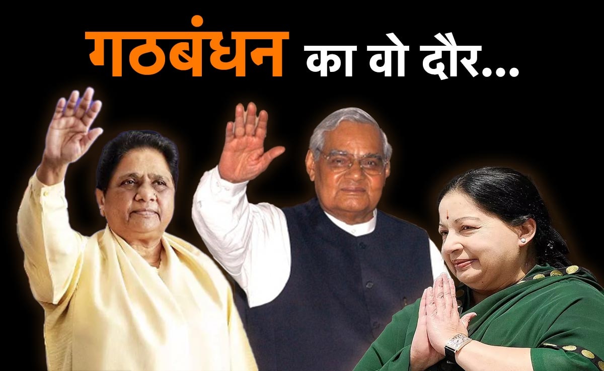 साल था 1996. 11वीं लोकसभा चुनाव (LokSabha Elections) के नतीजों ने सियासी पंडितों को कन्फ्यूज कर डाला था. जनादेश इस कदर बंटा था कि सरकार कैसे बनेगी यह सवाल था? बीजेपी के वोट नहीं बढ़े थे पर सीटें 40 बढ़ गई थीं. वह 161 के नंबर के साथ नंबर-1 पार्टी थी.कांग्रेस की बुरी गत हुई थी. देश की इस सबसे पुरानी पार्टी ने वोट शेयर में अपने जिंदगी की सबसे बड़ी गिरावट देखी थी.वोट 30 पर्सेंट से नीचे जा टिका था.उससे करीब 8 पर्सेंट कम वोट पाने वाली बीजेपी सरकार गठन की तैयारी में थी. लेकिन असली फायदा क्षेत्रीय क्षत्रपों को हुआ था. मायावती के वे सुनहरे दिन थे. 2 पर्सेंट वोट उसके खाते में जुड़े थे. यूपी में बीएसपी का वोट शेयर बढ़कर 20 हो गया था. और दूसरे क्षेत्रीय दलों को भी 3 फीसदी फोटो का फायदा हुआ था. तो यह था देश में गठबंधन की राजनीति के सबसे पेचीदा और रोमांचक दौर का ट्रेलर. जिसकी पिक्चर अगले पूरे पांच साल चली.