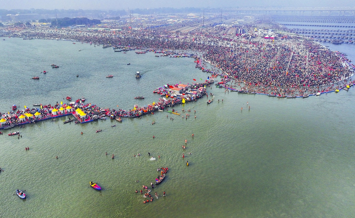 प्रयागराज संगम में पौष पूर्णिमा पर कुछ ऐसा था विहंगम दृश्य.